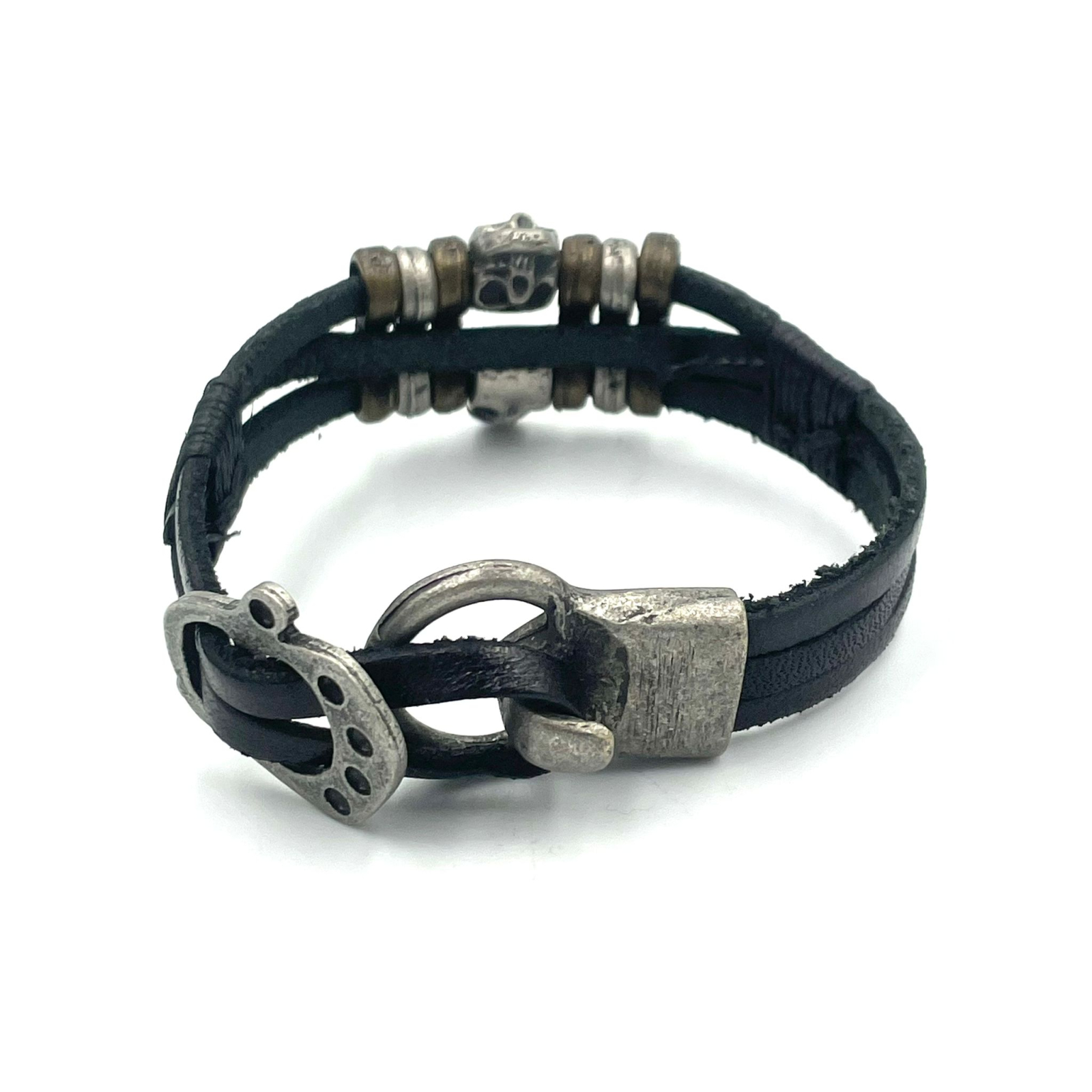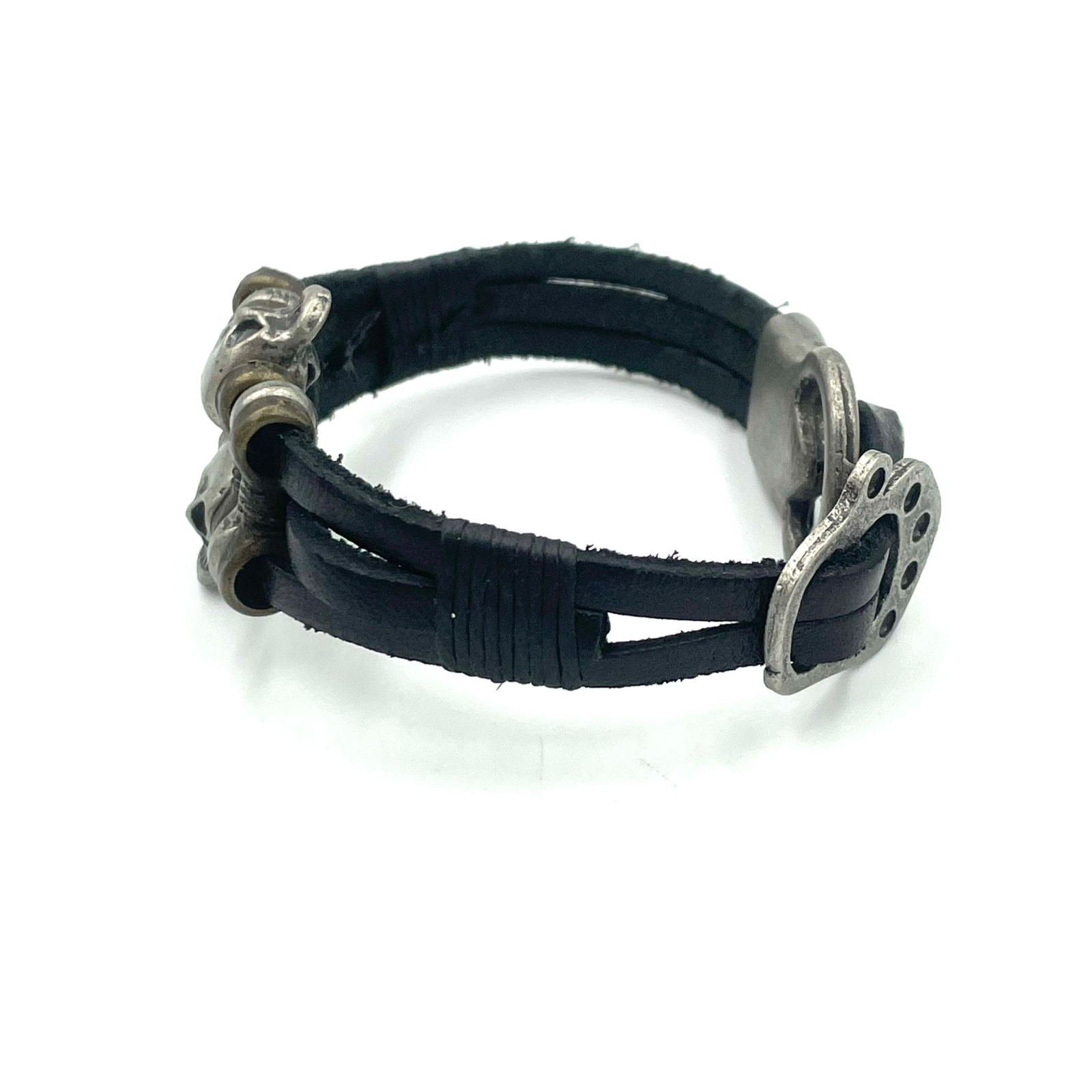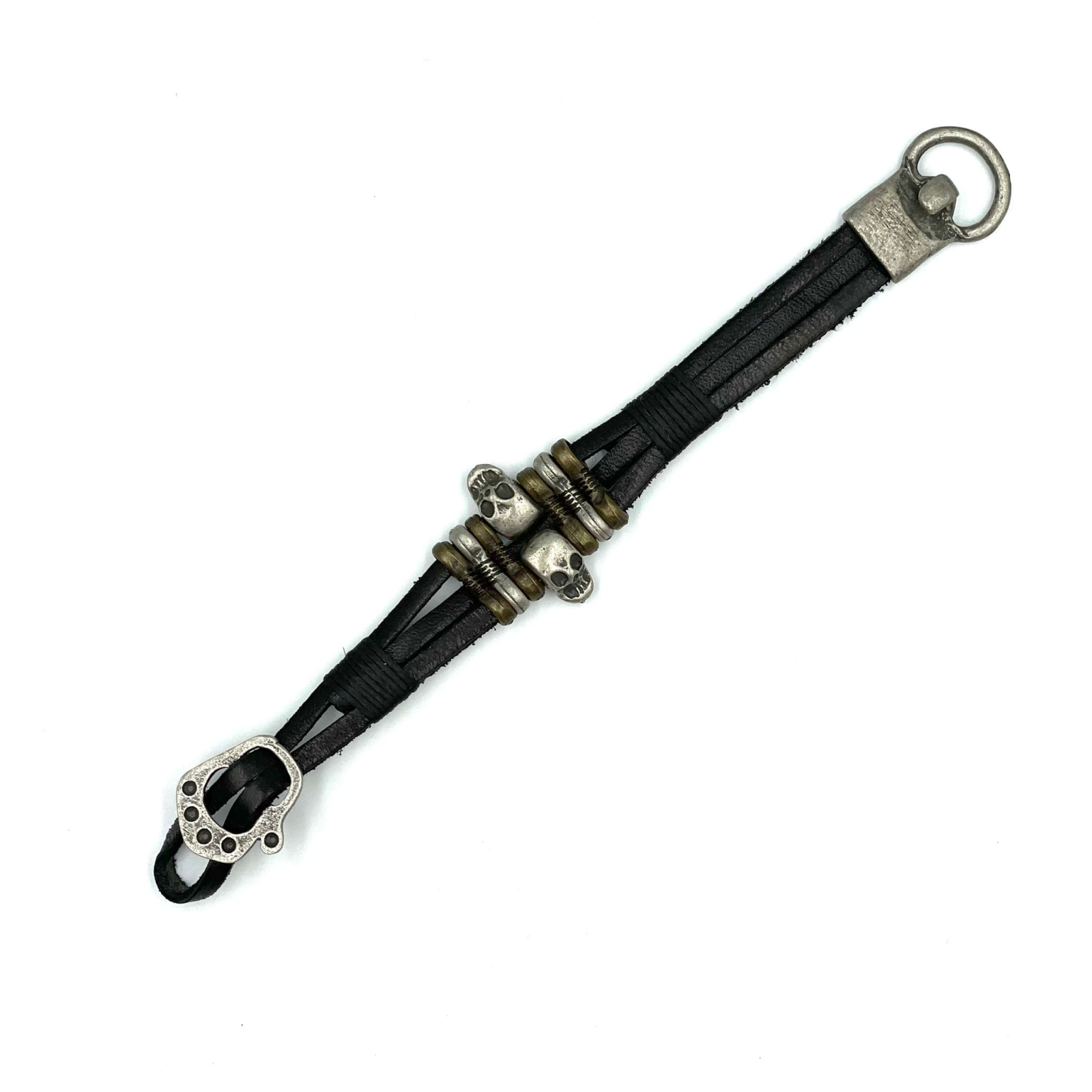Adaugă un strop de atitudine ținutelor tale cu această brățară statement din piele ecologică. Cu o lungime de 18 cm și o lățime de 1.5 cm, brățara se remarcă prin designul rock și detaliile îndrăznețe. Charmurile în formă de craniu adaugă un aer rebel și nonconformist, perfect pentru cei care își exprimă personalitatea prin accesorii unice. Ideală pentru purtare zilnică sau ca accent într-o ținută rock sau urbană.
