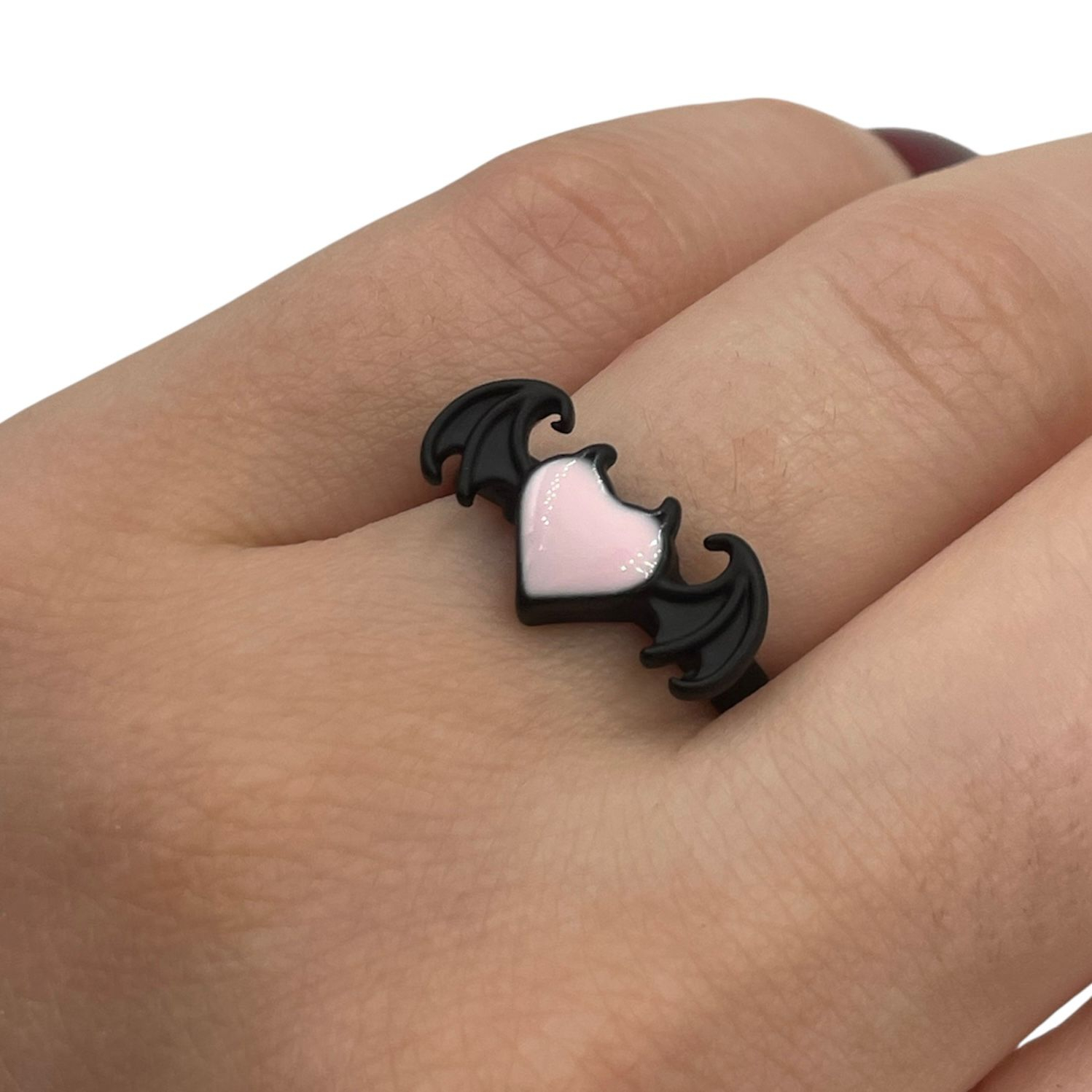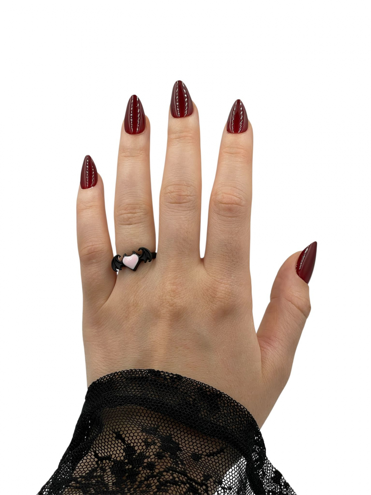 Inel Reglabil „Inima cu Aripi de Liliac” – Gothic Romance